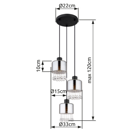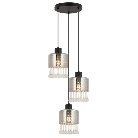 Závesné svietidlo, kov čierny matný, sklo dymové, sklenené kvapky priehľadné, akrylové krištále prie
