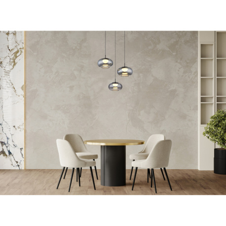Závesné svietidlo, kov čierny matný, sklo dymovej farby, kábel čierny, ø: 490 mm, V: 1500 mm, nastav