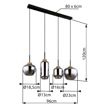 Závesné svietidlo kov čierny matný, sklo dymovej farby, konope prírodná farba, kábel PVC čierny, 4 r