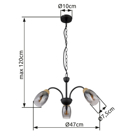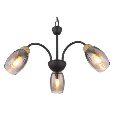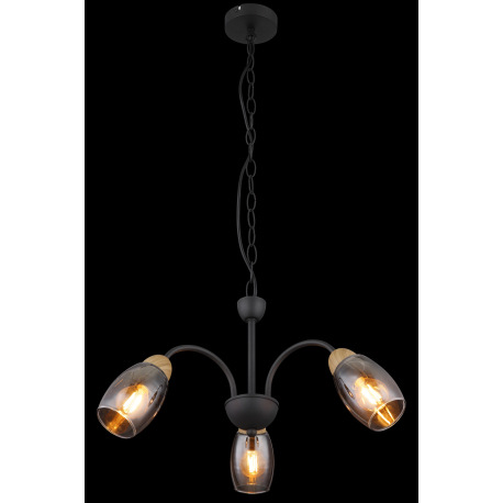 Závesné svietidlo kov čierny matný, sklo dymovej farby, kov imitácia dreva, kábel PVC čierny, ø: 470