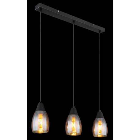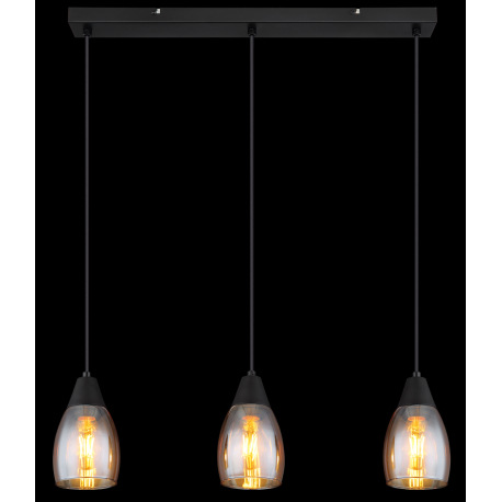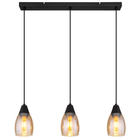 Závesné svietidlo kov čierny matný, sklo jantárové, kábel PVC čierny, možnosť nastavenia výšky, DxŠx