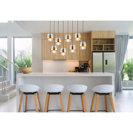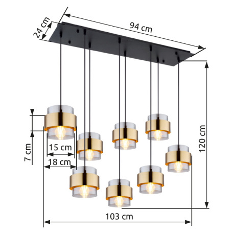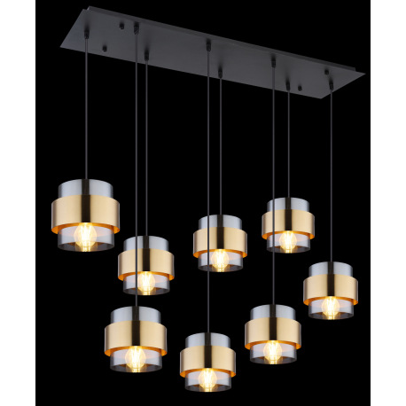 Závesné svietidlo, kov čierny matný, sklo, mosadz, DxŠxV: 1030x315x1200mm, bez žiaroviek 8x E27, max
