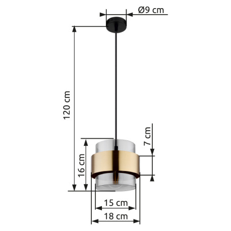 Závesné svietidlo, kov čierny matný, sklo, mosadz, ø: 180mm, V: 1200mm, bez žiarovky 1x E27, max. 60