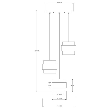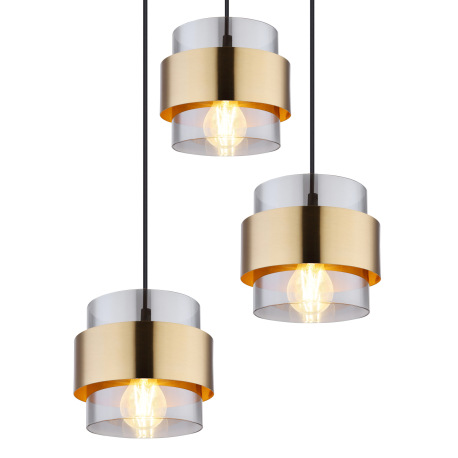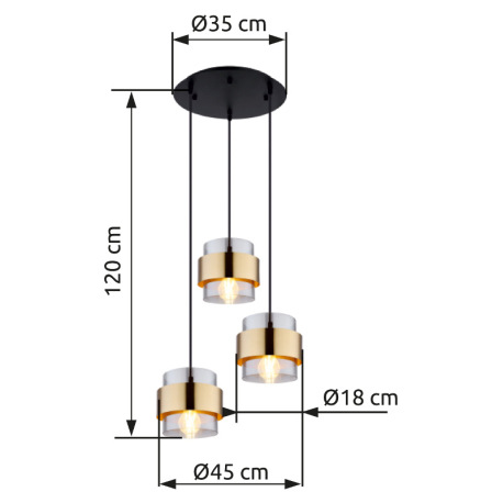 Závesné svietidlo, kov čierny matný, sklo, mosadz, ø: 450mm, V: 1200mm, bez žiaroviek 3x E27, max. 6