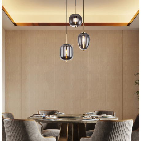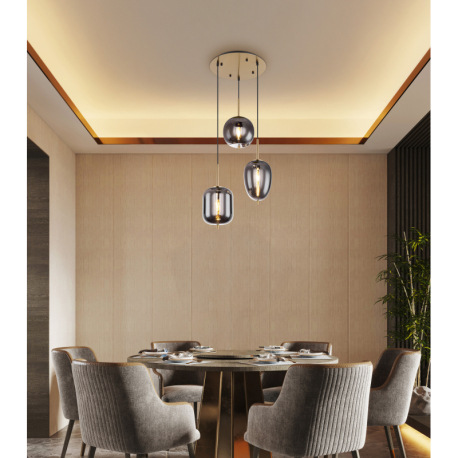 Závesné svietidlo, kov čierny, mosadz, dymové sklo, ø: 460mm, V:1200mm, bez žiaroviek 3x E14, max. 4