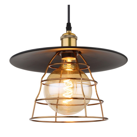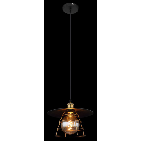 Závesné svietidlo, kov čierny, mosadz, kovové pletivo, čierny PVC kábel, ø: 300mm, V:1500mm, bez žia
