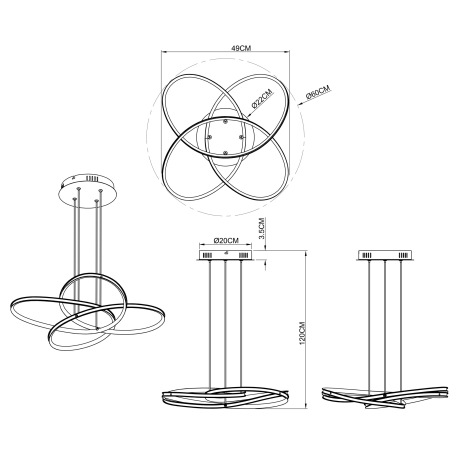 Závesné svietidlo, kov čierny, plast biely, Ø600, V: 1200, vrátane 1xLED 30W 230V, 1370lm, 3000K