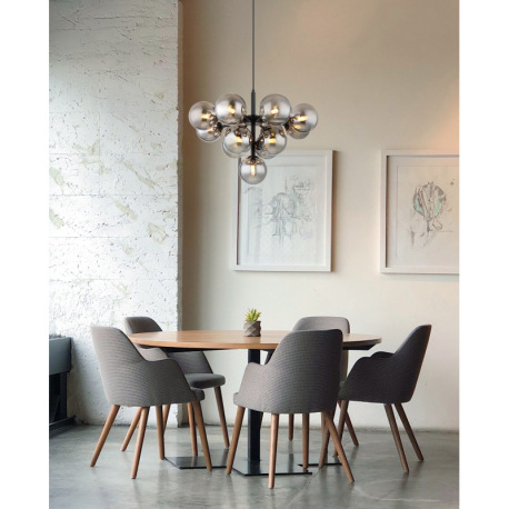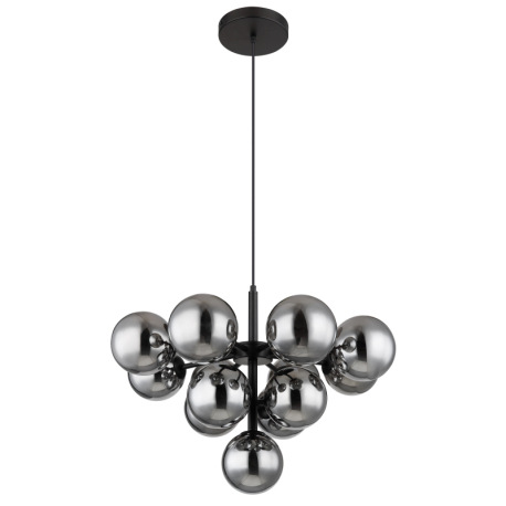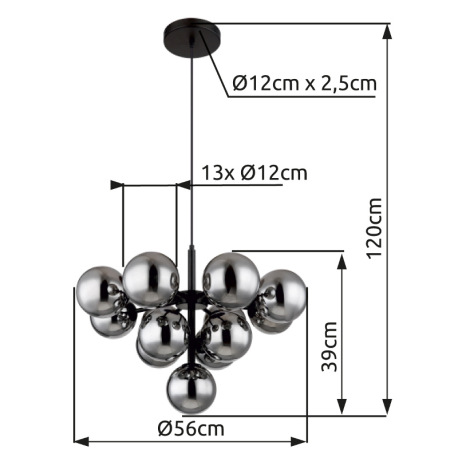 Závesné svietidlo, kov čierny, sklenené gule dymovej farby, textilný kábel čierny, výškovo nastavite