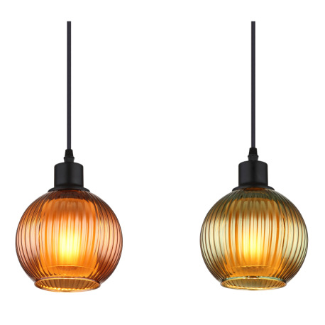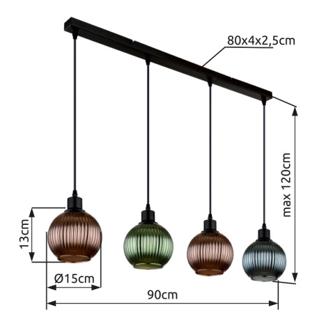 Závesné svietidlo, kov čierny, sklenené gule, kábel PVC čierny, nastaviteľná výška, farby skla: 1x z