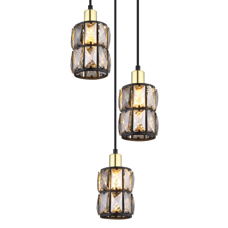 Závesné svietidlo, kov čierny, sklenené krištále dymové, kov matný, čierny PVC kábel, ø: 250mm, V:12