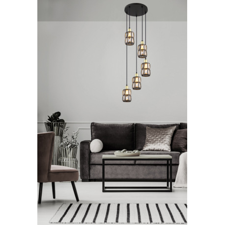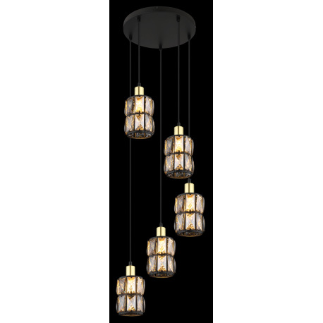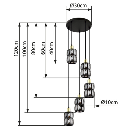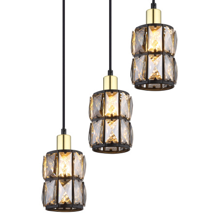 Závesné svietidlo, kov čierny, sklenené krištále dymové, kov matný, čierny PVC kábel, ø: 300mm, V:12