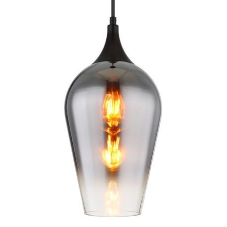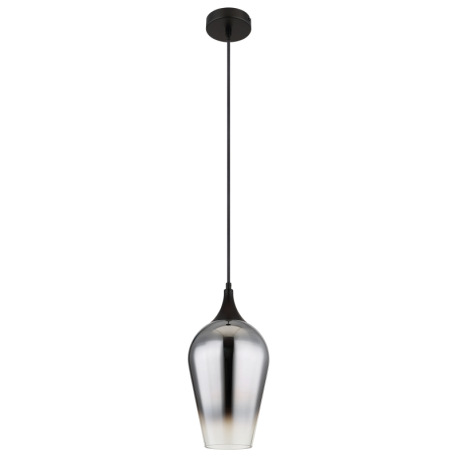 Závesné svietidlo, kov čierny, sklo chrómovej farby, čierny textilný kábel, možnosť skrátenia výšky,