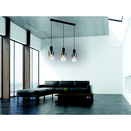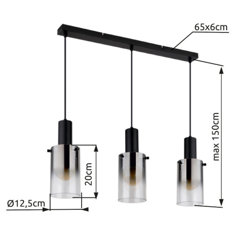 Závesné svietidlo, kov čierny, sklo dymové, priehľadné, kábel PVC čierny, možnosť skrátenia výšky, D