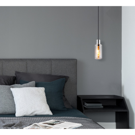 Závesné svietidlo, kov čierny, sklo dymovej farby, kábel PVC čierny, možnosť skrátenia výšky, ø: 100