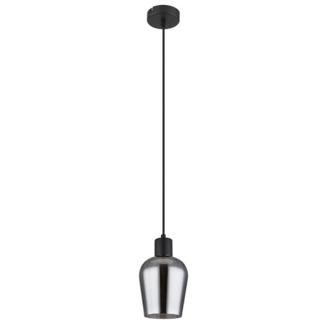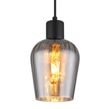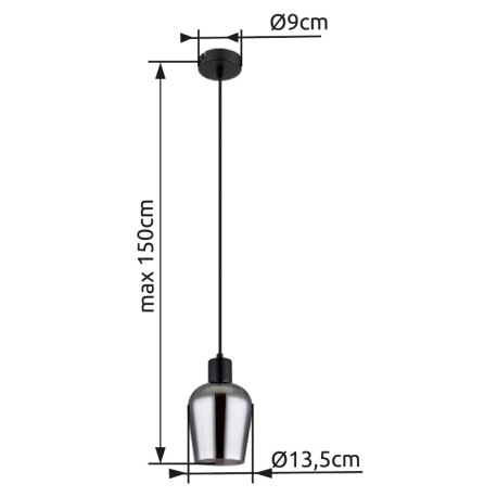 Závesné svietidlo, kov čierny, sklo dymovej farby, kábel PVC čierny, výškovo nastaviteľné, ø: 135mm,