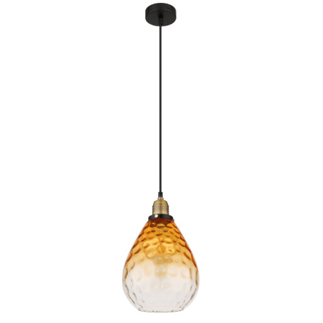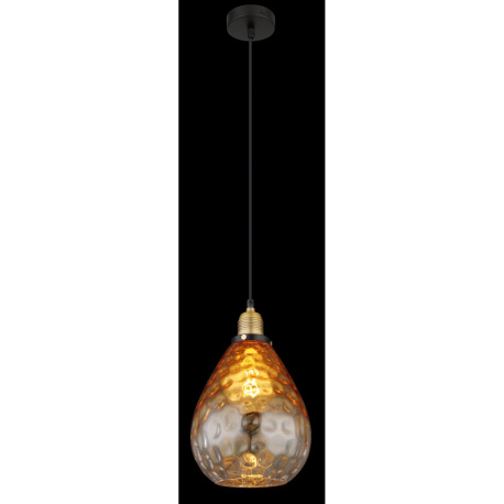 Závesné svietidlo, kov čierny, sklo jantárové, priehľadné, kov mosadzný matný, kábel PVC čierny, mož