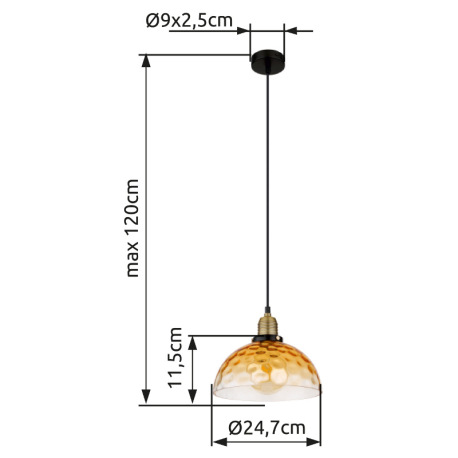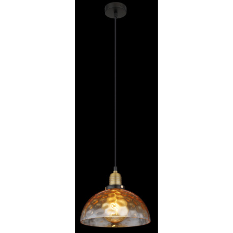 Závesné svietidlo, kov čierny, sklo jantárové, priehľadné, kov mosadzný matný, kábel PVC čierny, mož