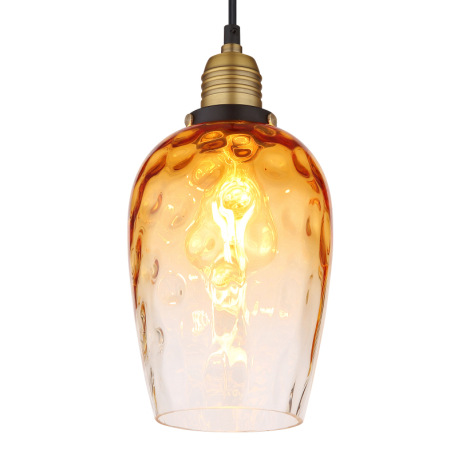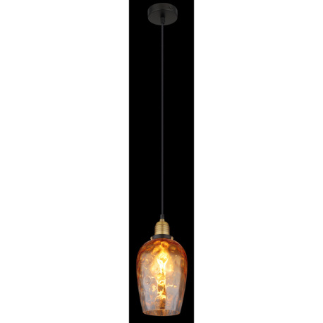 Závesné svietidlo, kov čierny, sklo jantárové, priehľadné, kov mosadzný matný, kábel PVC čierny, mož