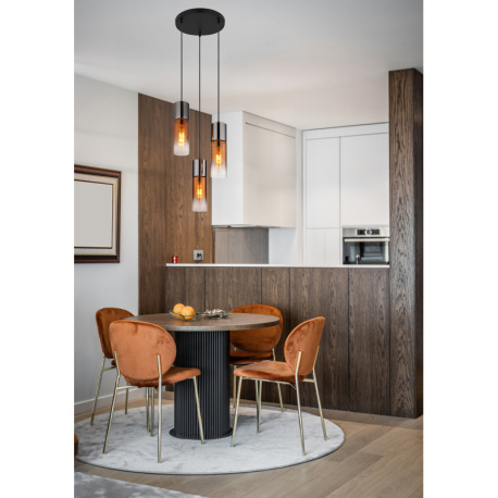 Závesné svietidlo, kov čierny, sklo medenej farby, priehľadné, kov čierny chróm, textilný kábel čier
