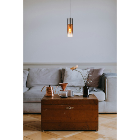 Závesné svietidlo, kov čierny, sklo medenej farby, priehľadné, kov čierny chróm, textilný kábel čier