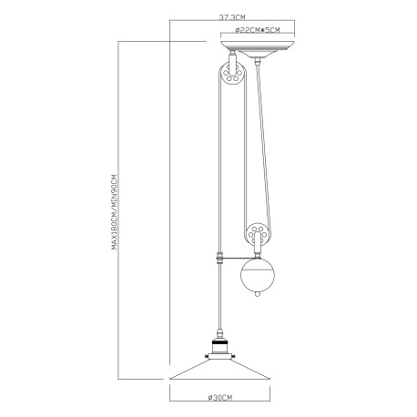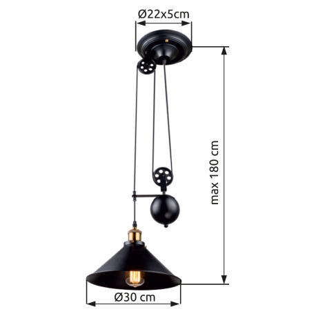 Závesné svietidlo, kov čierny, stará mosadz, výškovo nastaviteľné, 90-180 cm, Ø300 V:1800, bez žiaro