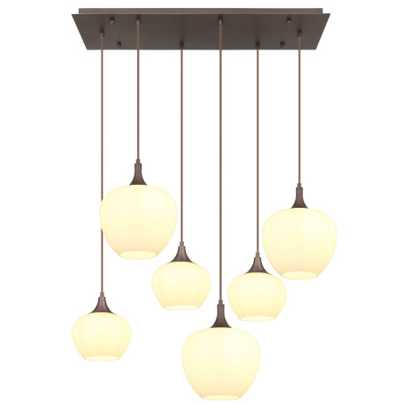 Závesné svietidlo, kov farba kávy, sklo biele, textilný kábel čierny, 2 veľkosti skiel, DxŠxV: 860x4