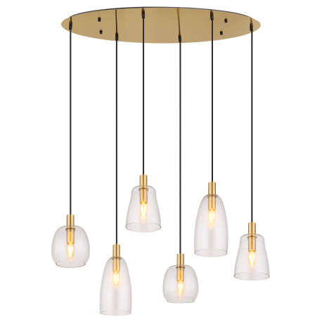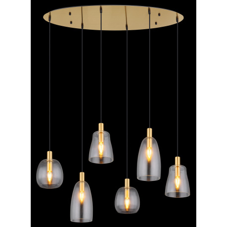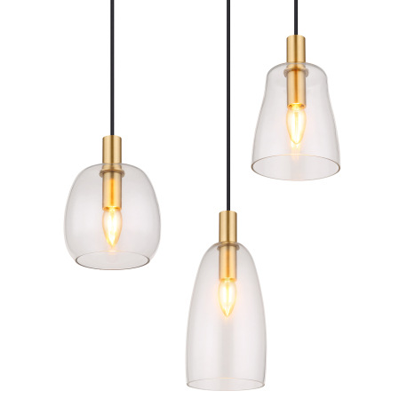 Závesné svietidlo kov mosadzná farba, sklo číre, kábel PVC čierny, možnosť nastavenia výšky, 3 rôzne