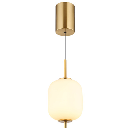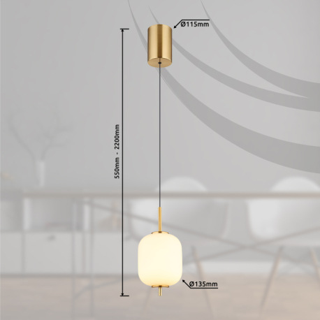 Závesné svietidlo, kov mosadznej farby, biele sklo, čierny PVC kábel, ø: 135 mm, V: 2200 mm, nastavi
