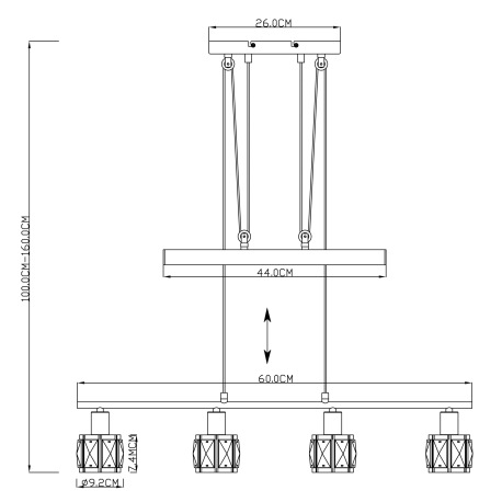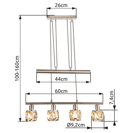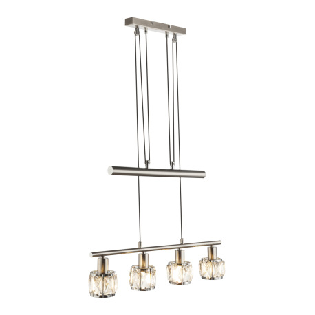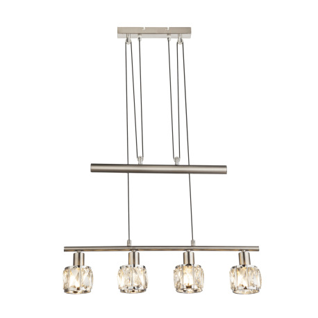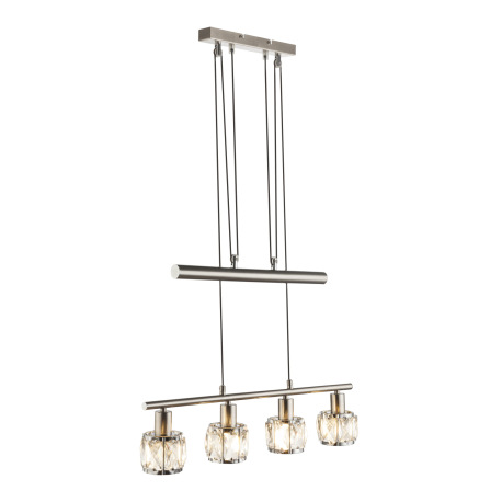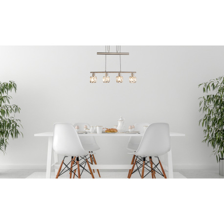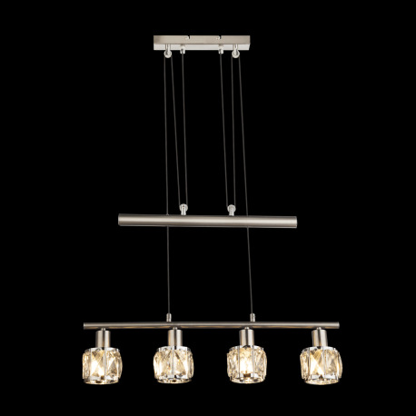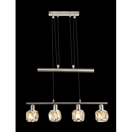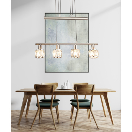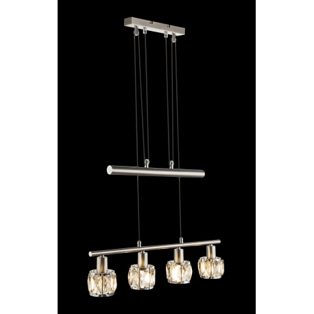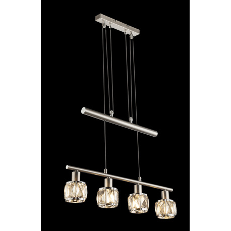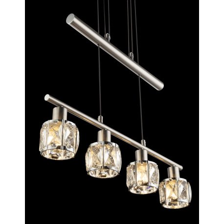 Závesné svietidlo, kov nikel matný, chróm, sklenený kryštál priehľadný, výškovo nastaviteľné, DxŠxV: