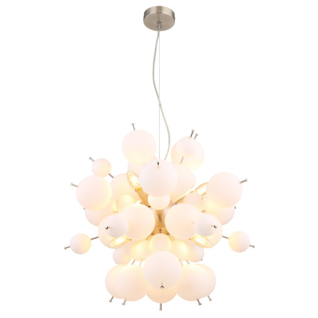 Závesné svietidlo, kov nikel matný, sklenené gule biele, kábel PVC čierny, ø: 550 mm, V: 1200 mm, sk