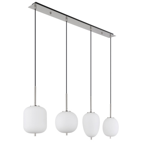 Závesné svietidlo kov nikel matný, sklo biele, kábel PVC čierny, možnosť nastavenia výšky, 4 rôzne s