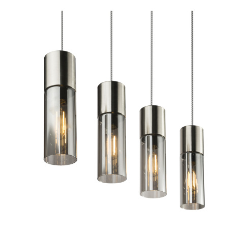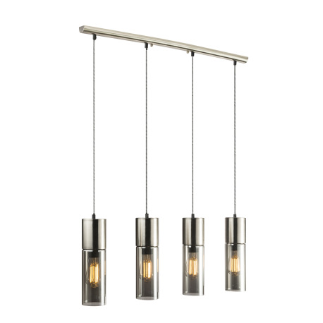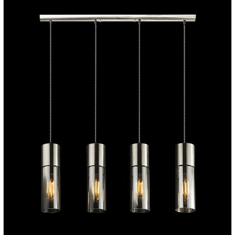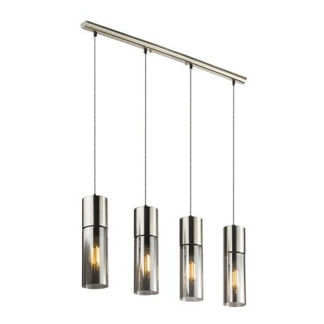 Závesné svietidlo, kov nikel matný, sklo dymové, čiernobiely textilný kábel, DxŠxV:800x90x1560, bez