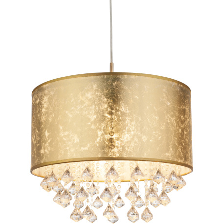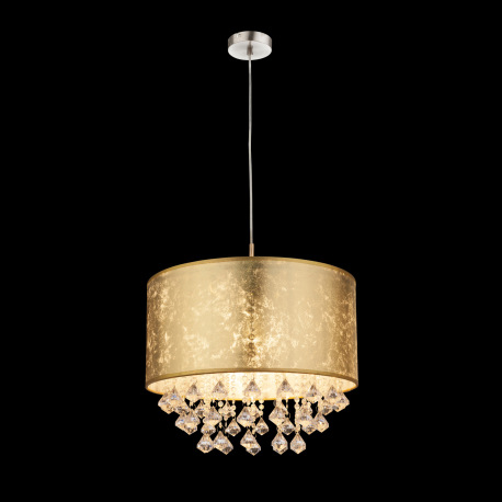 Závesné svietidlo, kov nikel matný, textil zlatý, akrylové krištále, ø 400, V:1400, bez žiarovky 1xE