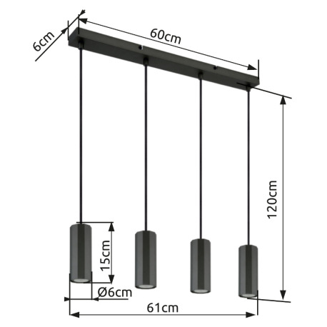 Závesné svietidlo, kov sivý, hliník sivý, kábel PVC čierny, výškovo nastaviteľné, DxŠxV: 610x60x1200