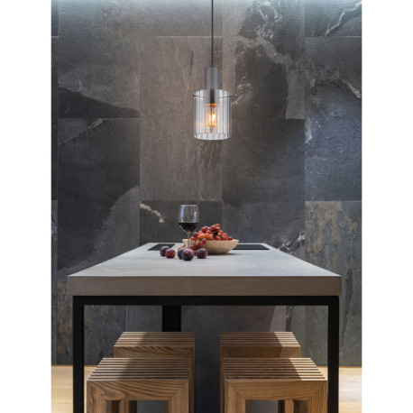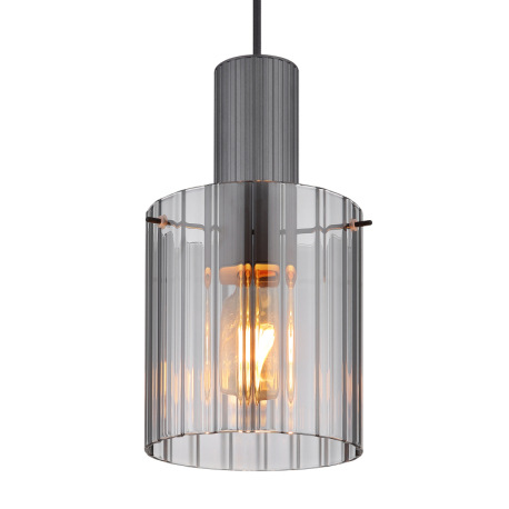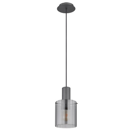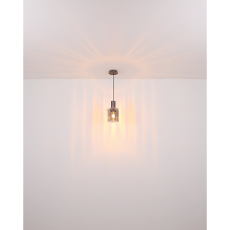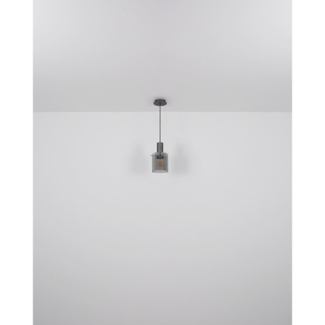 Závesné svietidlo, kov sivý tmavý, sklo dymovej farby, textilný kábel čierny, možnosť skrátenia výšk