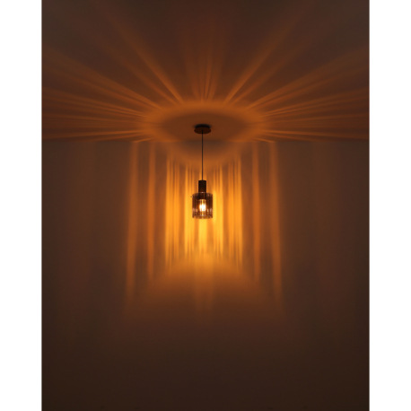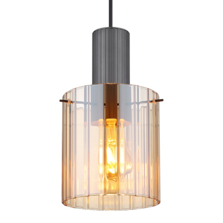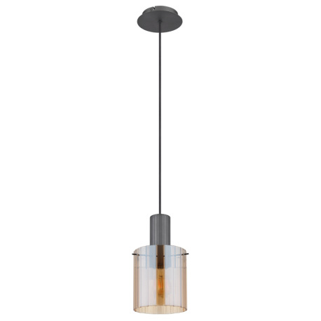 Závesné svietidlo, kov sivý tmavý, sklo jantár, kábel textil čierny, možnosť skrátenia výšky, sklo s