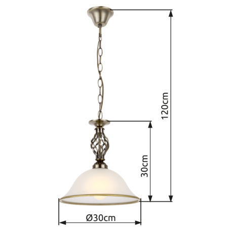Závesné svietidlo, kov, stará mosadz, satinované sklo, Ø 300, V:1200, bez žiarovky 1xE27, max. 60W 2