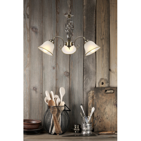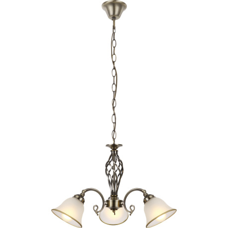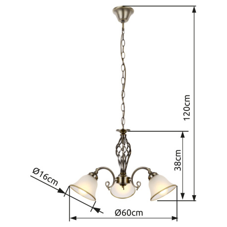 Závesné svietidlo, kov, stará mosadz, satinované sklo, Ø 600, V:1200, bez žiaroviek 3xE27, max. 60W