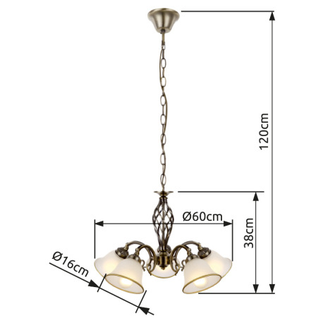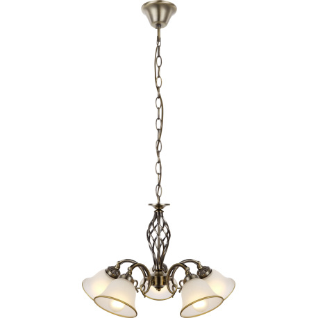 Závesné svietidlo, kov, stará mosadz, satinované sklo, Ø 600, V:1200 bez žiaroviek 5xE27, max. 60W 2