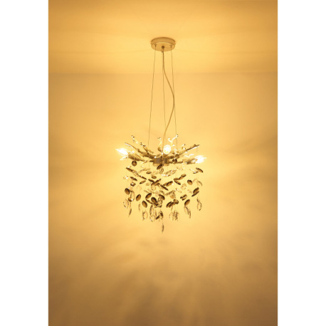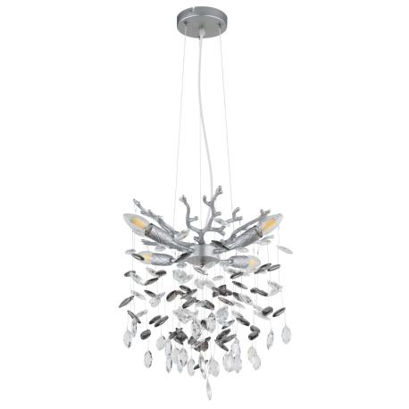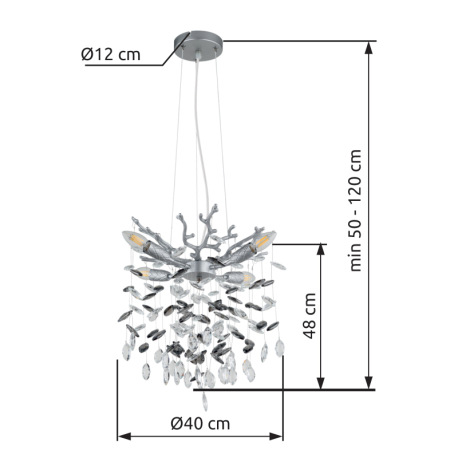 Závesné svietidlo, kov strieborný matný, sklenené krištále dymové, číre, výškovo nastaviteľné, flexo
