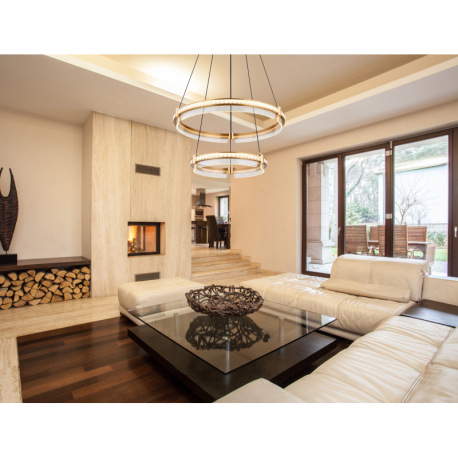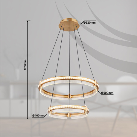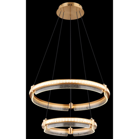 Závesné svietidlo, kov zlatej farby, hliník zlatej farby brúsený, krištále K5 číre, akryl číry, stmi