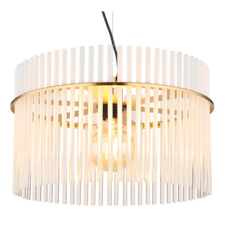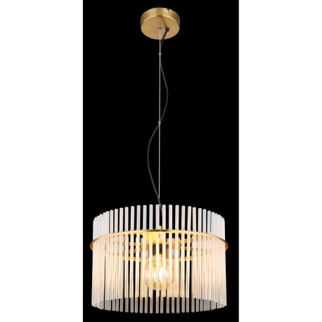 Závesné svietidlo, kov zlatej farby, sklenené tyče biele, priehľadné, kábel PVC čierny, možnosť skrá