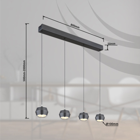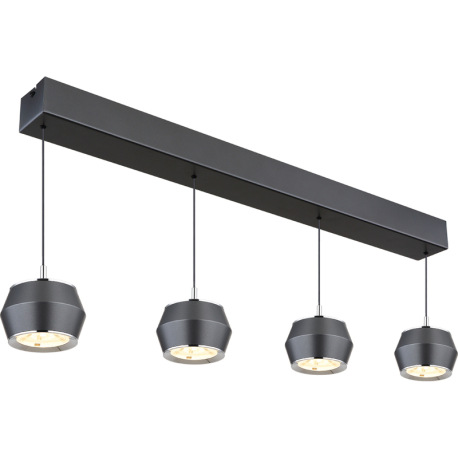 Závesné svietidlo, kov/hliník sivý matný, akryl biely, chrómový krúžok, kábel PVC čierny, DxŠxV: 805