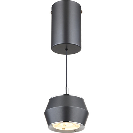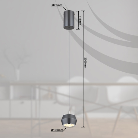 Závesné svietidlo, kov/hliník sivý matný, akryl biely, chrómový krúžok, kábel PVC čierny, ø: 100 mm,