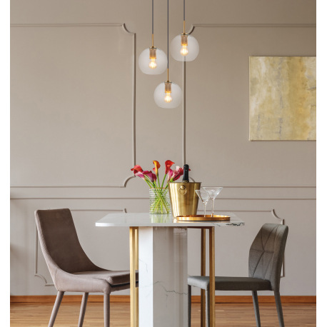 Závesné svietidlo, mosadz matná, priehľadné sklo, čierny kábel z PVC, Ø 470, V: 1200, bez žiaroviek