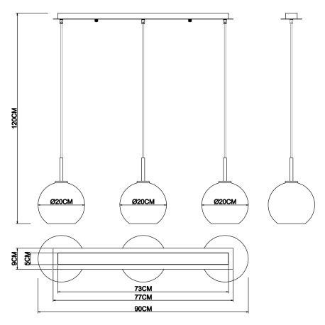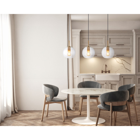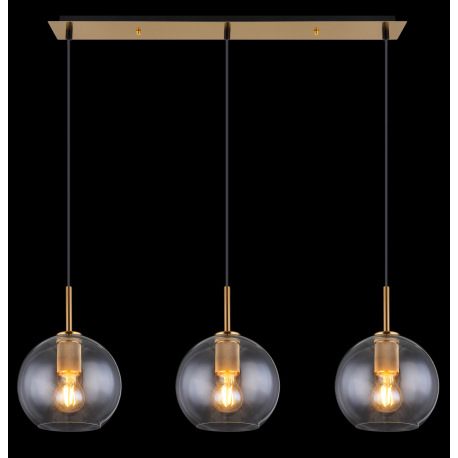 Závesné svietidlo, mosadz matná, priehľadné sklo, čierny PVC kábel, DxŠxV:900x200x1200, bez žiarovie
