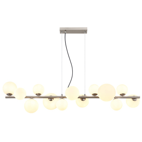 Závesné svietidlo, nikel, sklo biele, kábel PVC transparentný, DxŠxV: 1200x345x1200mm, sklo ø: 6x10c