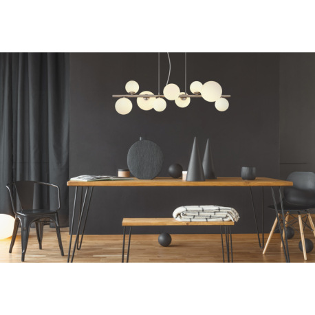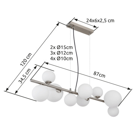 Závesné svietidlo, nikel, sklo biele, kábel PVC transparentný, DxŠxV: 870x345x1200mm, sklo ø: 4x10cm