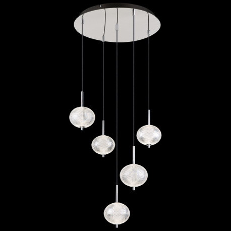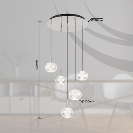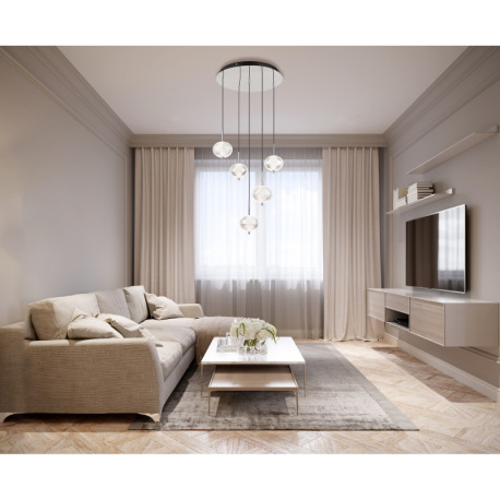 Závesné svietidlo, pochrómovaný kov, číry akryl, čierny PVC kábel, niekoľko úrovní pomocou nástennéh